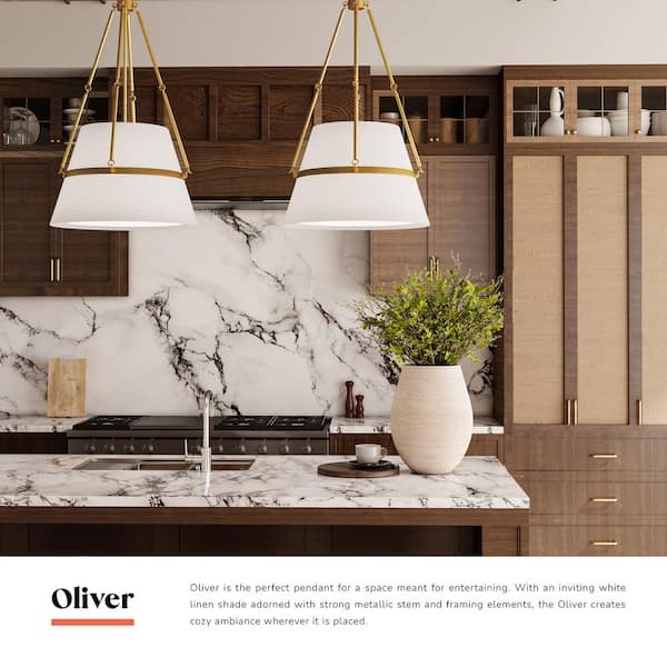 Oliver 18 in. 1 Light 60-Watt Aged Gold/White Linen Pendant Light