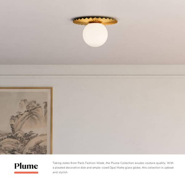 Plume 12 in. 1 Light 60-Watt Matte Black/Opal Matte Glass Flush Mount