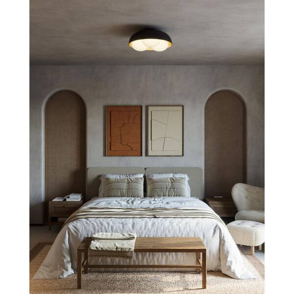 Robyn 16 in. 3-Light 40-Watt Matte Black/Opal Glass Flush Mount