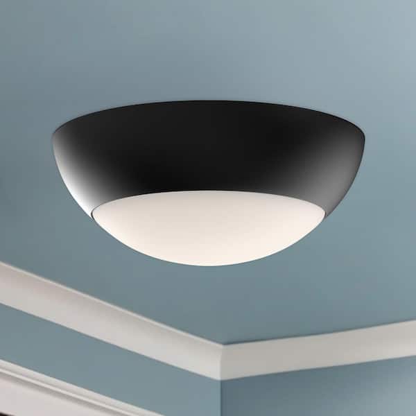 Rubio 11 in. 2 Light 60-Watt Matte Black/Opal Matte Glass Flush Mount