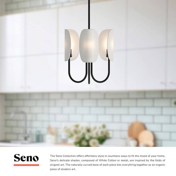 Seno 15 in. 3 Light 60-Watt Aged Gold/White Cotton Fabric Chandelier