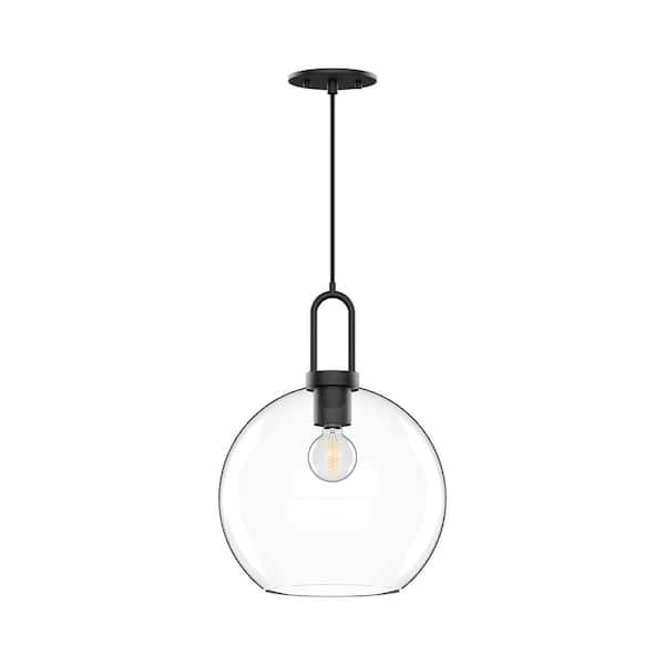 Soji 10 in. 1 Light 60-Watt Clear Glass/Matte Black Pendant Light