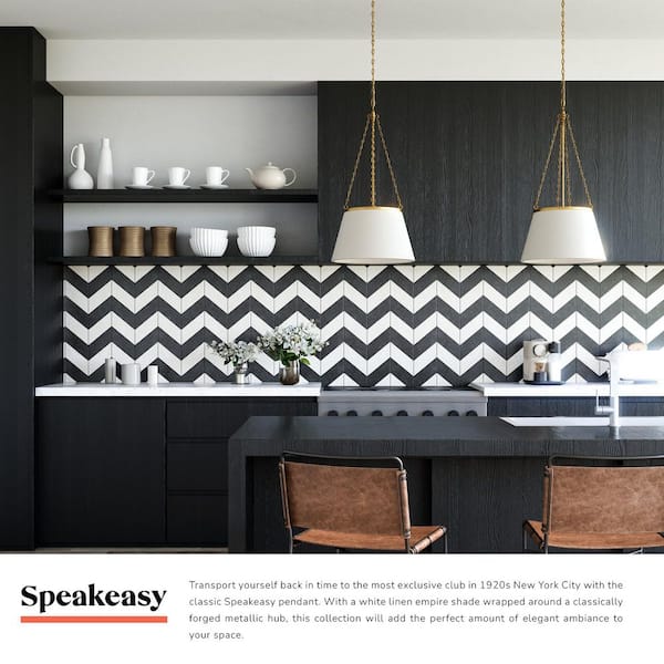 Speakeasy 18 in. 1 Light 60-Watt Aged Gold/White Linen Pendant Light