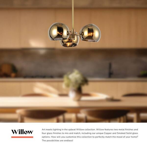 Willow 16 in. 3 Light 60-Watt Brushed Gold/Opal Matte Glass Pendant Light