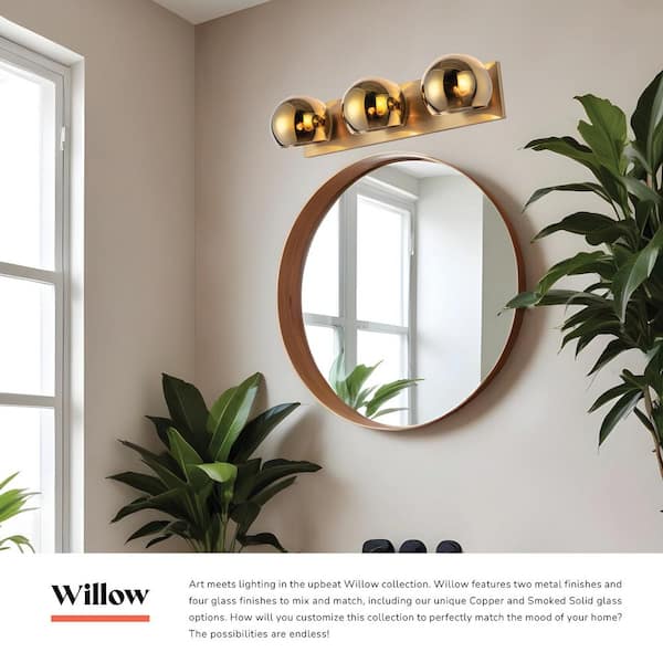 Willow 22-in 3 Light 60-Watt Matte Black/Smoked Solid Glass Vanity Light