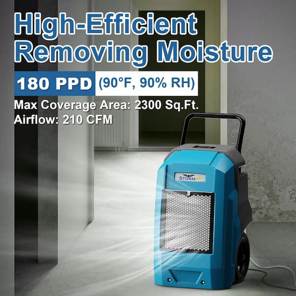 180 pt. 2,300 sq. ft. bucketless Commercial Dehumidifier in Blue with Wi-Fi Application Caontrol and Built-in Pump