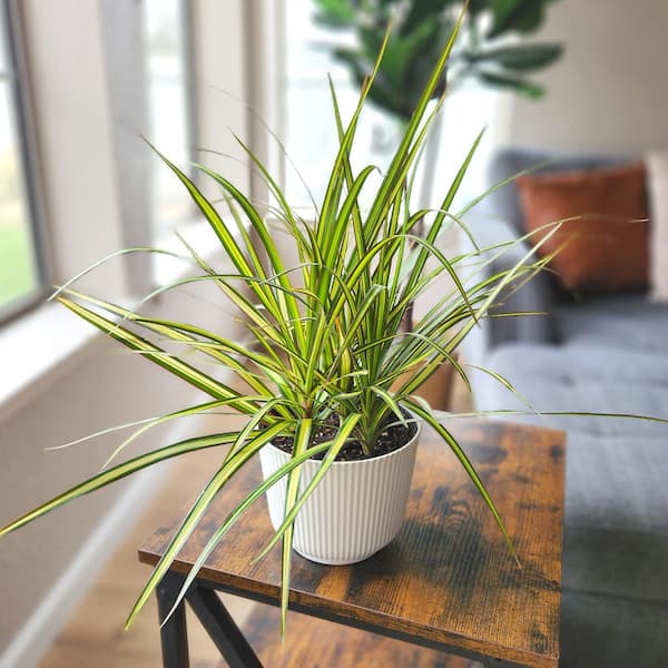 Dracaena Marginata Sunray, 6 in. White Decorative Pot, Variegated Dracaena Plant, Houseplant, Live Indoor Plant Gift