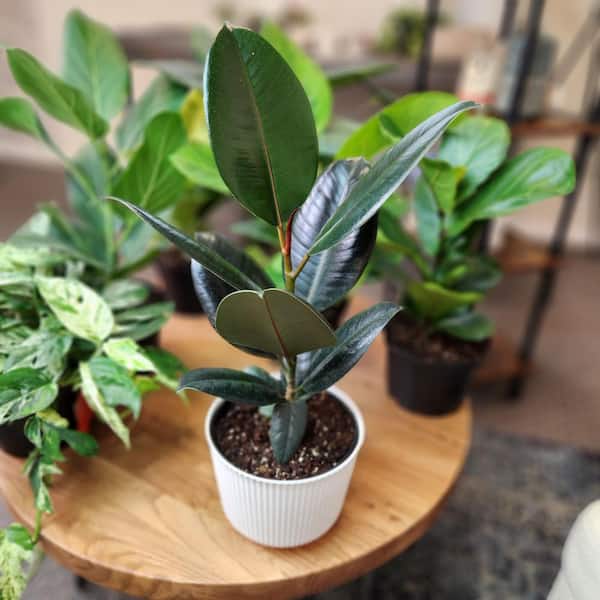 Ficus Burgundy Rubber Plant, 6 in. White Decorative Pot, Dark Rubber Tree Plant, Unique Live Indoor House Plant Gift