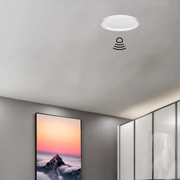 Radar Sensor Disk 5 in. Canless 3000K New Construction or Remodel Integrated LED Recessed Light Kit with White Trim