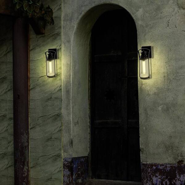 Crespa 14 in. Black Motion Sensing Outdoor Hardwired Cylinder Sconce with No Bulbs Included
