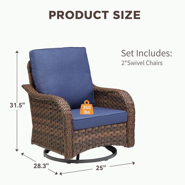 2-Piece Patio Wicker Outdoor Outdoor Rocking Chair with 360° Arbitrary Rotation, Blue Cushions