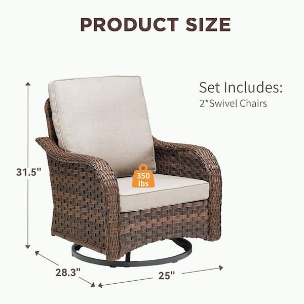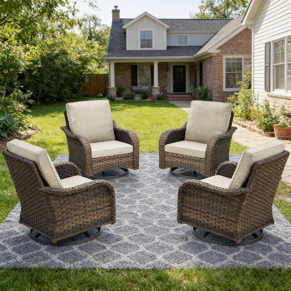 4-Piece Wicker Rocking Chair, 360° Arbitrary Rotation with Beige Cushions, Suitable for Indoor and Outdoor