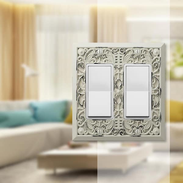 Filigree 2 Gang Rocker Metal Wall Plate - Antique White