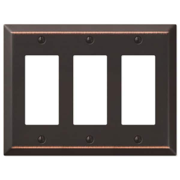 Metallic 3-Gang Aged Bronze Decorator/Rocker Stamped Steel Wall Plate