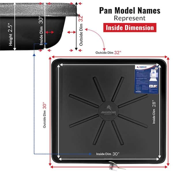 30 in. x 28 in. Pre-drilled Plastic Washing Machine Drain Pan with Drainhose Adapter in Black