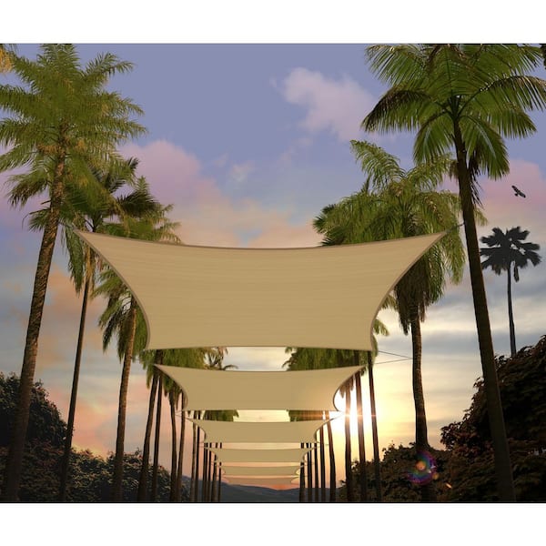 10 ft. x 16 ft. Rectangle Sun Shade Sail with Rope-Sand beige