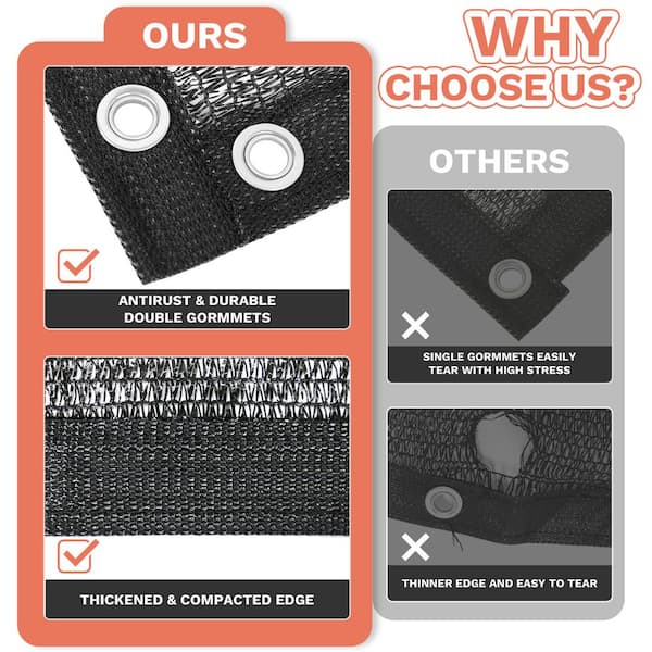 12 ft. x 24 ft. 50% Black Shade Cloth, Heavy Duty Grommets Shade for Greenhouse, Garden, Patio, Pergola