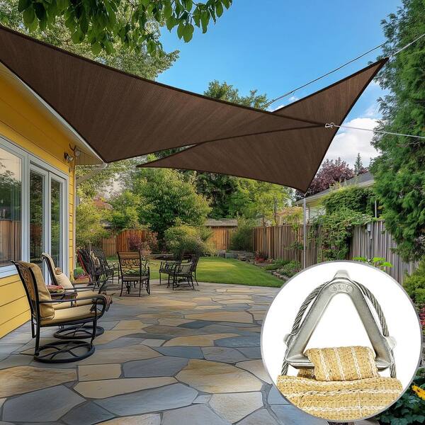 18 ft. x 18 ft. x 18 ft. Triangle Pro Ring Sun Shade Sail with Rope-Brown