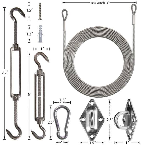 6 in. Triangle Sun Shade Sail Installation Hardware Kit with Cables