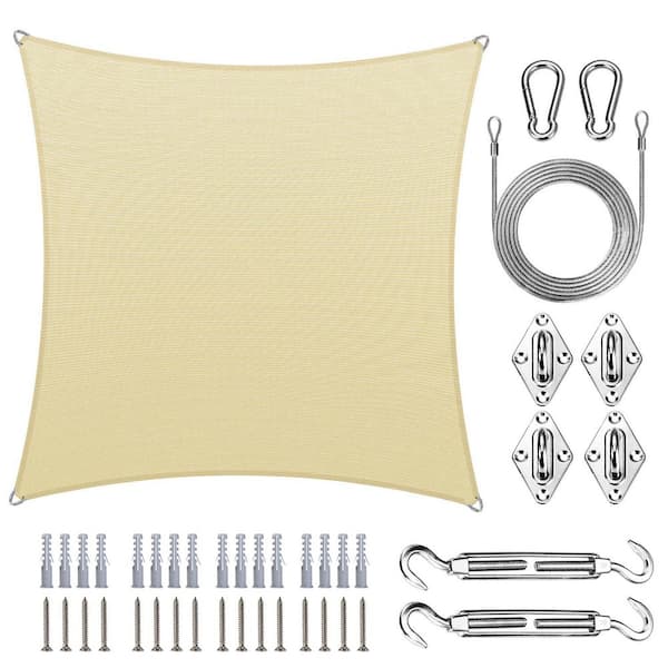 Pro Ring 18 ft. x 18 ft. Square Sun Shade Sail with Hardware Kit and Rope-Beige