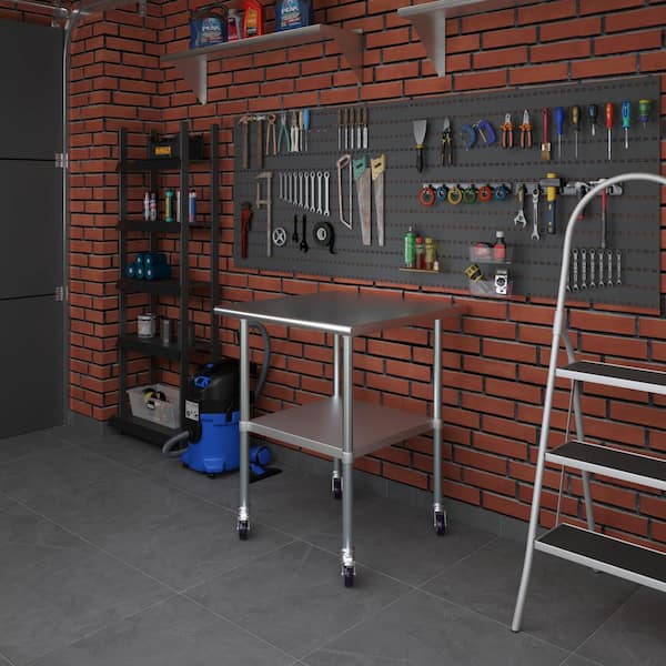 30 in. x 30 in. Stainless Steel Work Table with Casters : Mobile Metal Kitchen Utility Table with Bottom Shelf