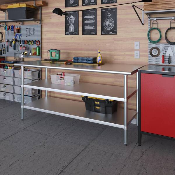 30 in. x 72 in. Stainless Steel Kitchen Utility Table with 2 Adjustable Shelves : Metal Prep Table