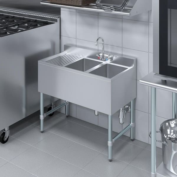 36 in. x 19 in. 2-Compartment Underbar Sink with Left Drainboard and Faucet