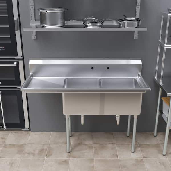 57 1/4 in. x 23.5 in. Stainless Steel 2-Compartment Sink with 18 in. x 18 in. Bowls and 18 in. Left Drainboard
