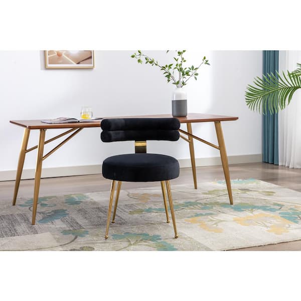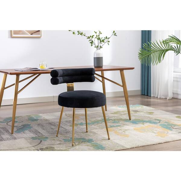 Velvet Leisure Dining Chair,Tufted Upholstered Side Chair,Living Room Accent Chair with Metal Legs, Bedroom, Club,Black