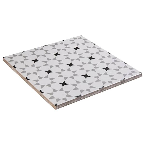Bliss Deco Black/Gray and White 8 in. x 8 in. Porcelain Matte European Floor and Wall Tile Sample