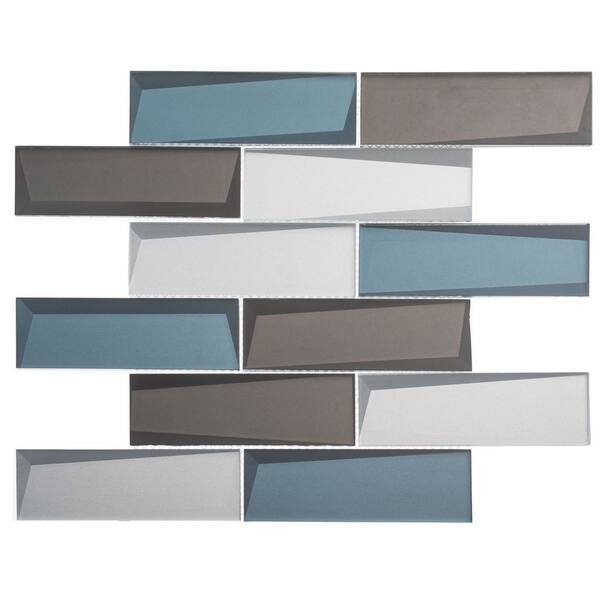 Daazen Cris Black/Blue/White 5 in. x 6.5 in. 3-D Look Brick-Joint Glass Mosaic Wall Tile Sample