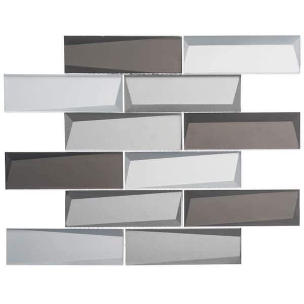Daazen Dove Black/Gray/White 5 in. x 6.5 in. 3-D Look Brick-Joint Glass Mosaic Wall Tile Sample
