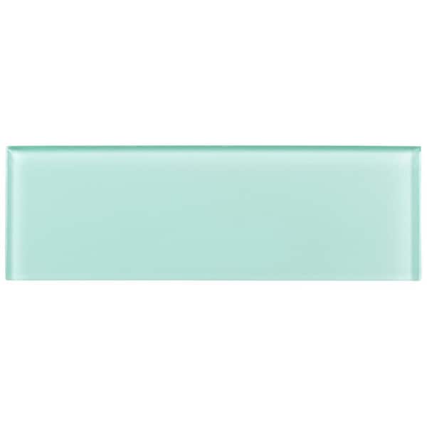 Enchant Elle Bewitch Aqua Blue Glossy 4 in. x 12 in. Smooth Glass Subway Wall Tile Sample