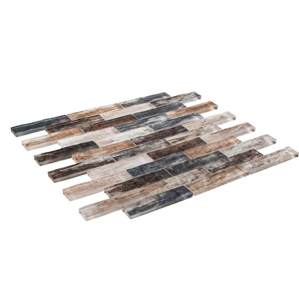 Giovan Desmond Brown/Tan/Blue/Gray 11-3/4 in. x 11-3/4 in. Textured Glass Brick Joint Mosaic Tile (4.8 sq. ft./Case)