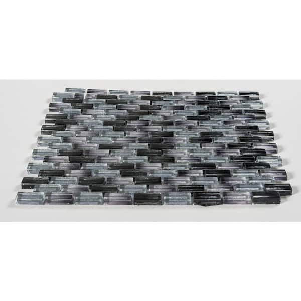 Highline Urbano Black/Gray 4.5 in. x 8.25 in. Smooth Glass Brick Joint Mosaic Tile Sample