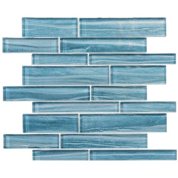 Hoem Rectangle 11.75 in. x 11.75 in. Polished Splash Blue Glass Mosaic Tile Sample