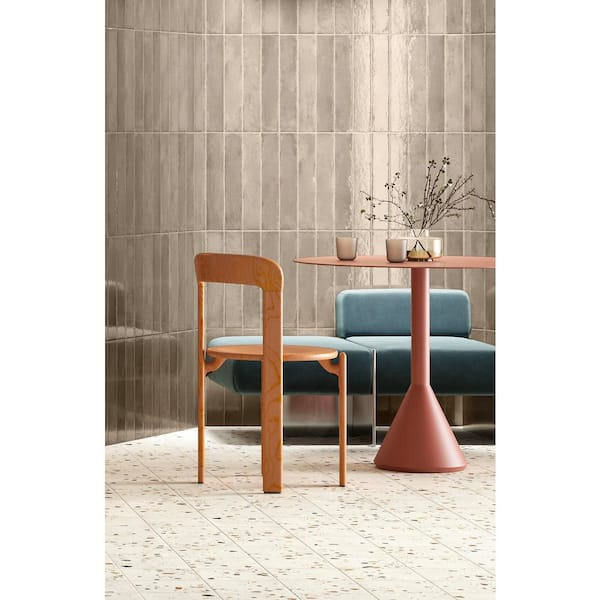 Ivox Voen Brown 3 in. x 16 in. Herringbone Glossy Porcelain Subway Wall Tile Sample