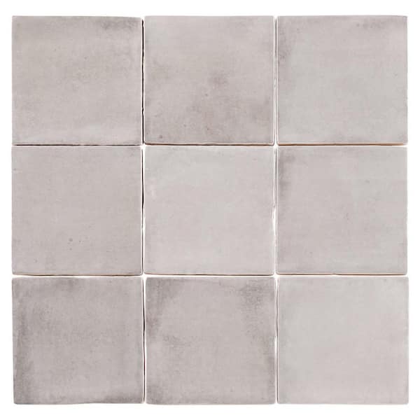 Jenae Effal Grey 4 in. x 4 in. Zellige Glossy Ceramic Wall Tile (5.38