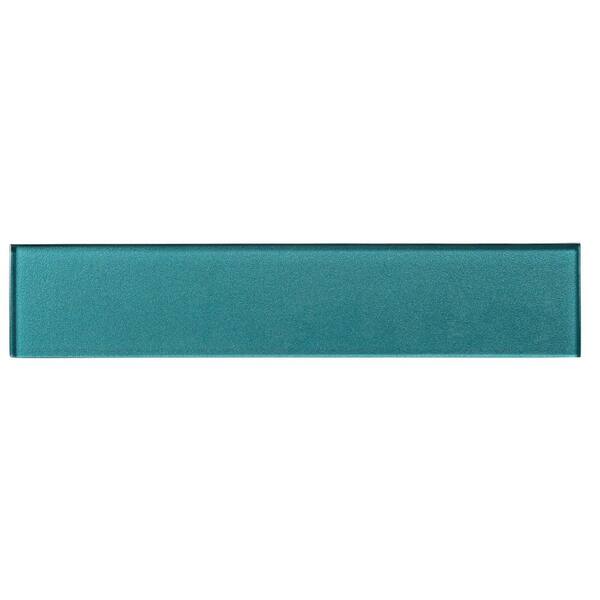Kwiet Relaxation Green Glossy 2-7/8 in. x 14-3/8 in. Smooth Glass Subway Wall Tile Sample