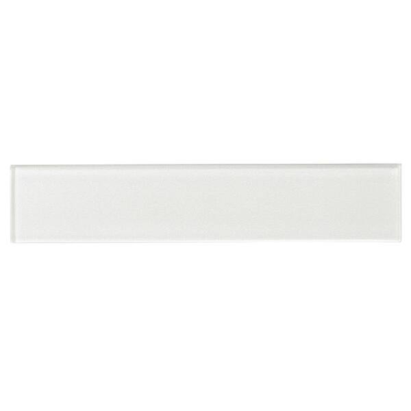 Kwiet Soothing White Glossy 2-7/8 in. x 14-3/8 in. Smooth Glass Subway Wall Tile Sample