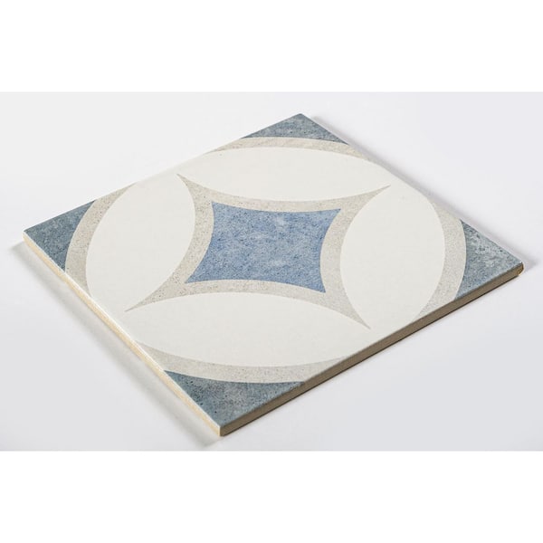 Luv Adore White/Blue/Gray 8 in. x 8 in. Smooth Matte Porcelain Floor and Wall Tile Sample