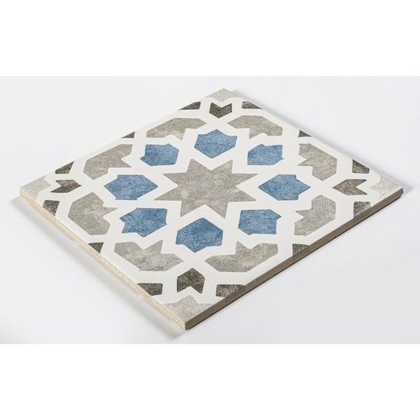 Luv Charmed Black/White/Blue/Gray 8 in. x 8 in. Smooth Matte Porcelain Floor and Wall Tile Sample