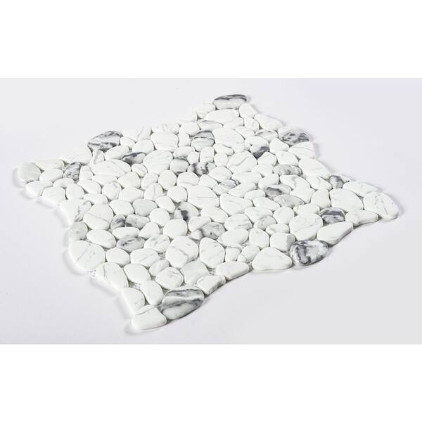 Mellow Tranquil White/Gray 4.5 in. x 8.25 in. Smooth Stone Look Glass Mosaic Wall Tile Sample