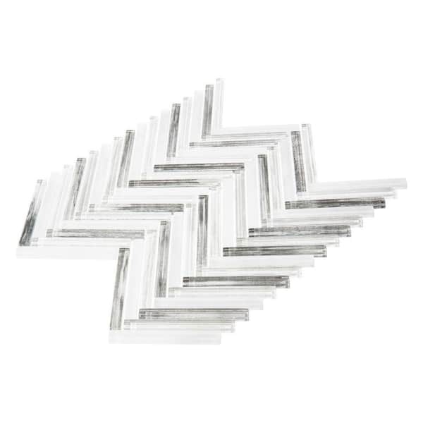 Moln Liv Grey 0.5-in. x 4-in. Glass Herringbone Wall and Floor Mosaic Tile Sample