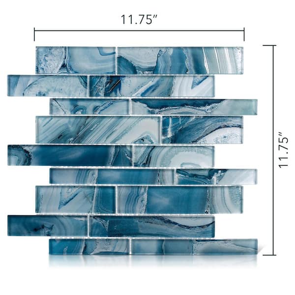 Myst Lake Blue/Light Blue 5 in. x 6.5 in. Glossy Smooth Glass Mosaic Tile Sample