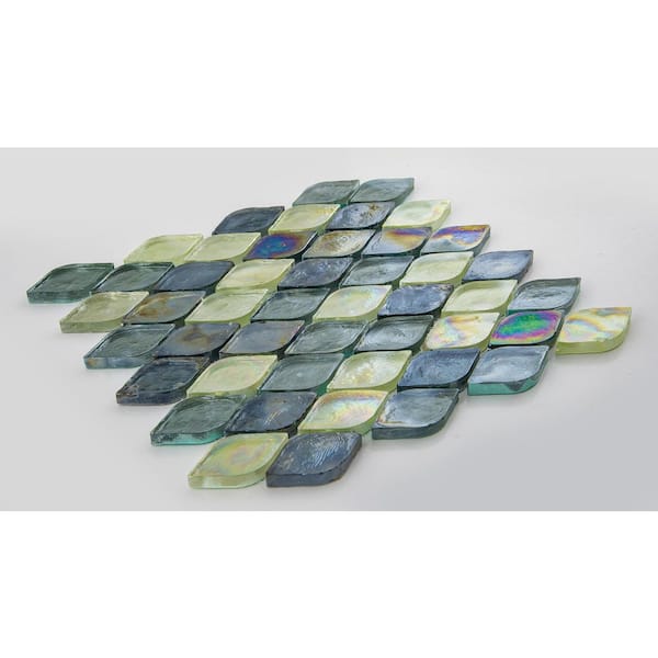Plume Grey/White/Black/Brown/Silver 4.5 in x 8.25 in Arabesque Mosaic Iridescent Glass Tile Sample
