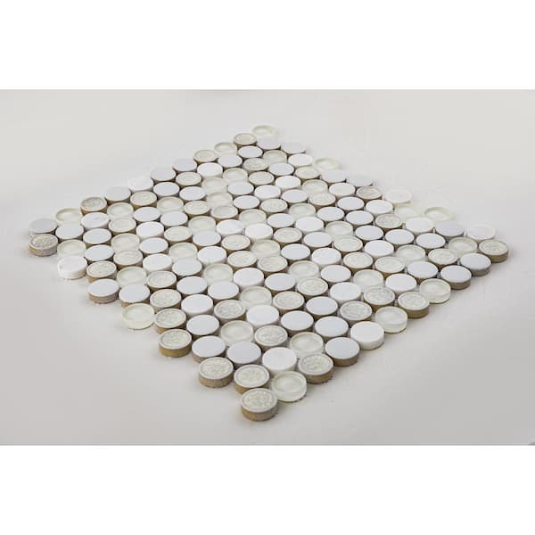 Polka Uno Gray/White/Tan 4.5 in. x 8.25 in. Textured Round Glass and Ceramic Mosaic Tile Sample
