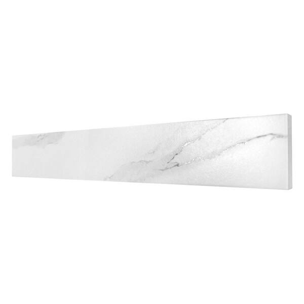 Porlan Benecia White 3-in. x 17-in. Marble Look Matte Porcelain Floor and Wall Subway Tile Sample