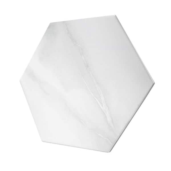 Porlan Benecia White 8-in. x 9-in. Hexagon Marble Look Matte Porcelain Floor and Wall Tile Sample