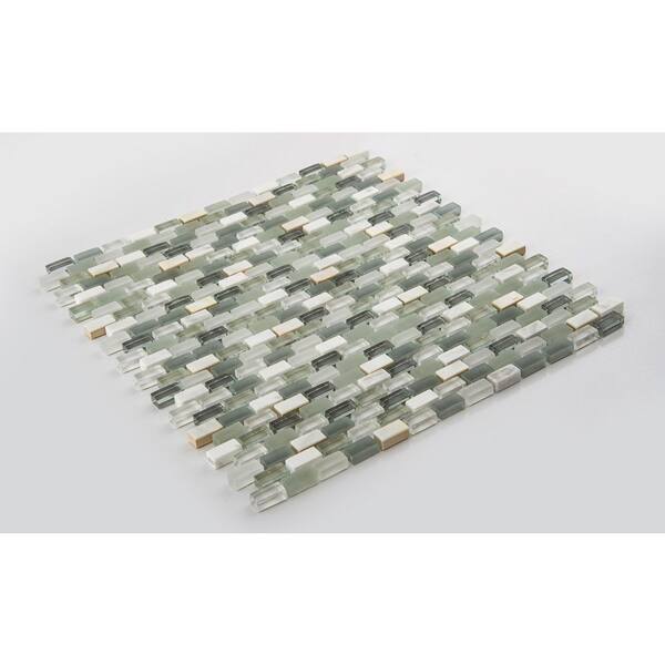 Tino Rodin Green/Clear/White/4.5 in. x 8.25 in. Smooth Marble/Shell and Glass Mosaic Tile Sample